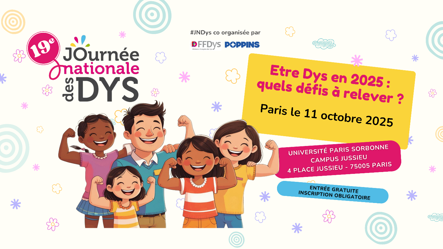 Nous espérons vous compter parmi nous pour cette nouvelle édition de la Journée Nationale des DYS, placée sous le signe de l’échange, du partage et de la mobilisation collective.